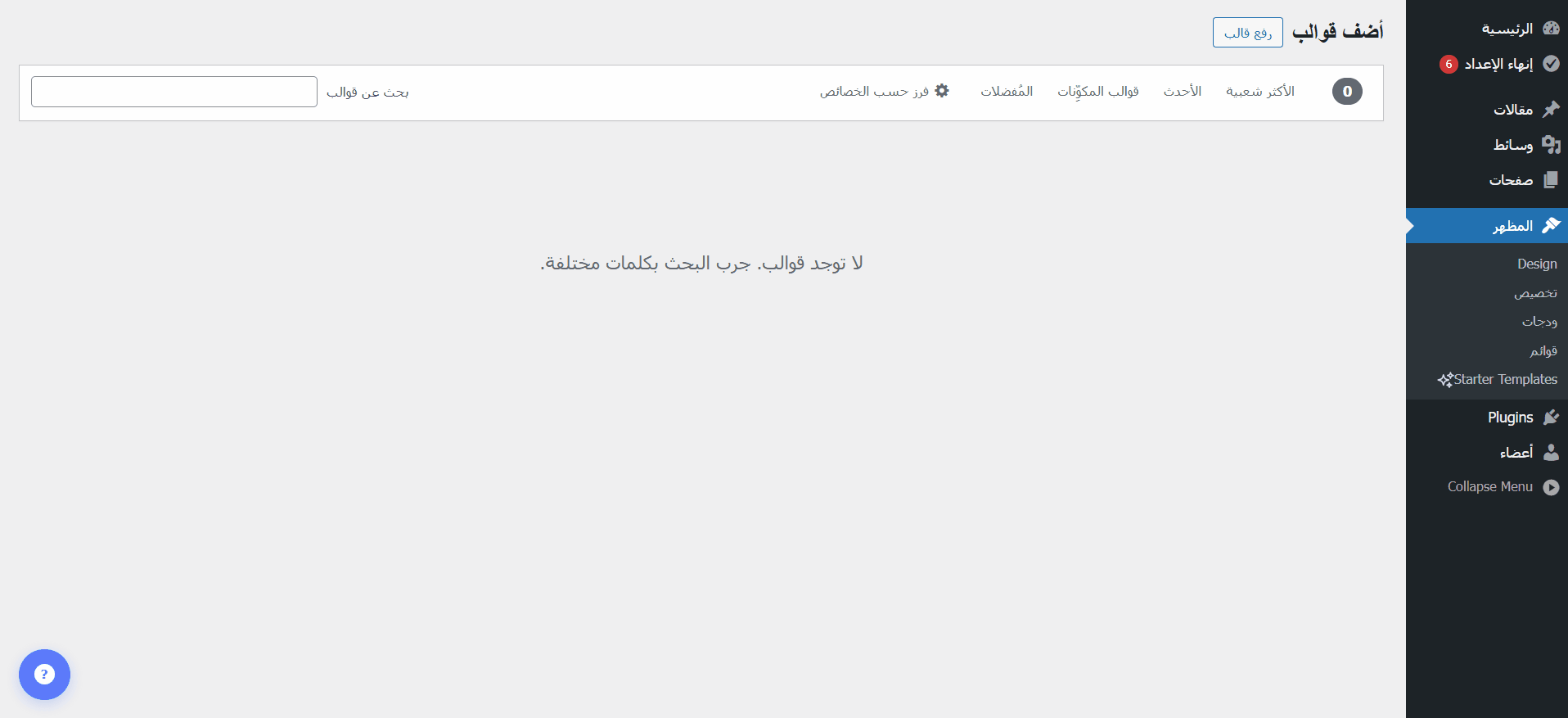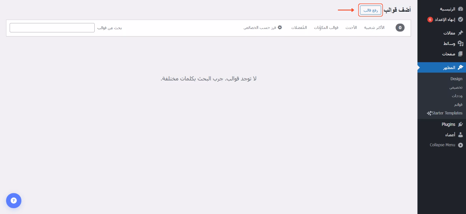 - اذهب إلى المظهر → القوالب (Appearance → Themes)