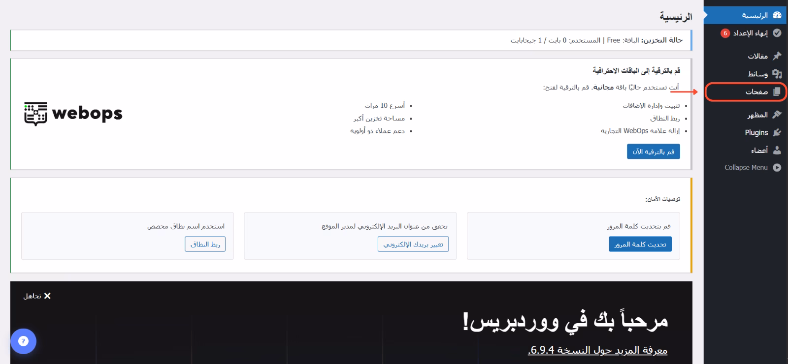 - في لوحة تحكم WordPress، انتقل إلى القائمة الجانبية على اليمين.