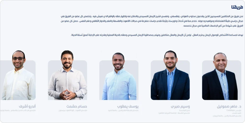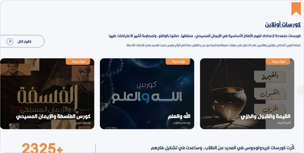 كريدولوجوس هو فريق يقدّم محاضرات ومحتوى يَحترم العقل ويُعالج التساؤلات والاعتراضات المتعلقة بالإيمان المسيحي. لقد قمنا بتطوير موقع إلكتروني احترافي وغني بالمعلومات يعرض رسالة كريدولوجوس وخدماته. يتميّز الموقع بتصميم بسيط وسهل الاستخدام، ويتيح وصولاً سلسًا إلى معلومات حول مشروعاتهم وفِرقهم ومبادراتهم. يهدف تصميم الموقع إلى جذب الزوّار والتواصل بفعالية مع أهداف كريدولوجوس وإنجازاته.