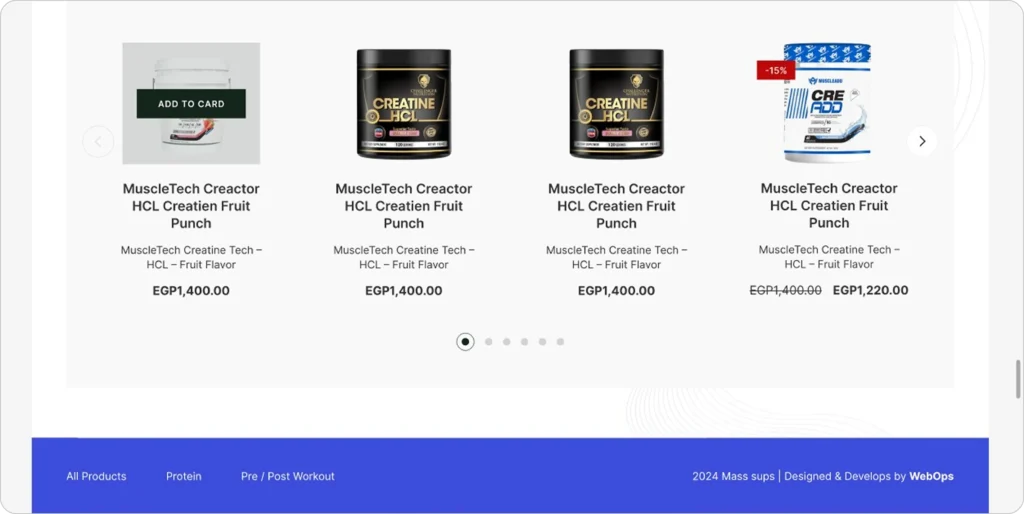 تعد Mass Supps علامة تجارية رائدة في مجال التغذية الرياضية، تقدم مكملات غذائية عالية الجودة مصممة لتعزيز الأداء، وبناء القوة، ودعم الصحة العامة. قامت WebOps بتطوير موقع تجارة إلكترونية يعرض مجموعة منتجاتهم، ويجذب عشاق اللياقة البدنية، ويوفر تجربة تسوق سلسة.