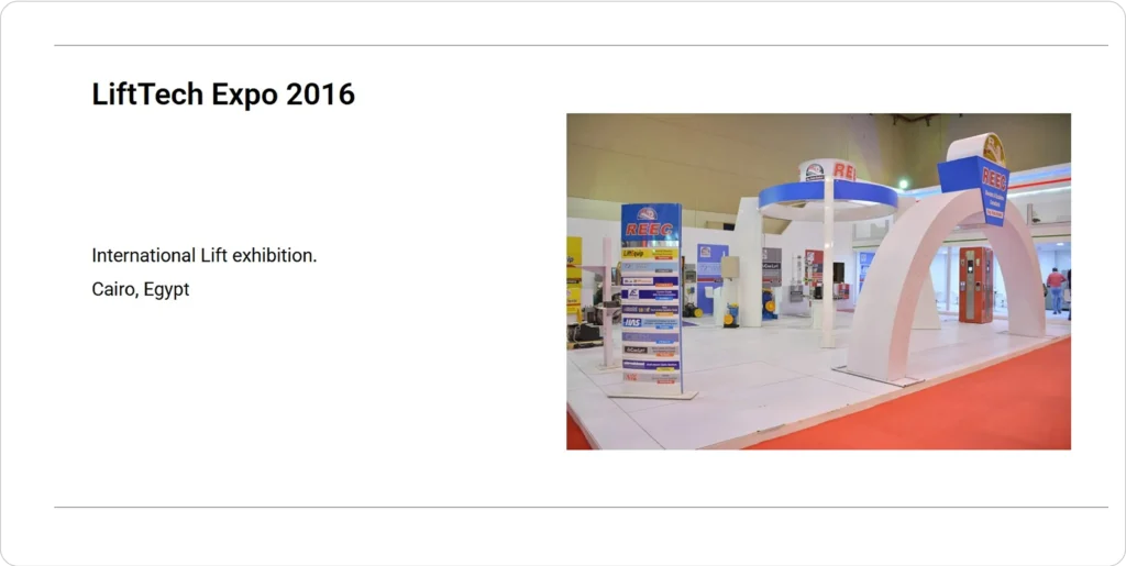 تأسست REEC Egypt عام 1997، وهي من الشركات الرائدة في تقديم حلول المصاعد والسلالم المتحركة في مصر. تتخصص في التركيب والصيانة وتوفير المكونات عالية الجودة من أبرز الشركات العالمية، وتخدم كلاً من المشاريع السكنية والتجارية. قامت WebOps بتطوير موقع إلكتروني سهل الاستخدام يعرض مجموعة منتجاتهم المتنوعة، والمواصفات التفصيلية، والحلول المخصصة، مما يعزز تفاعل العملاء وسهولة الوصول إلى المعلومات.