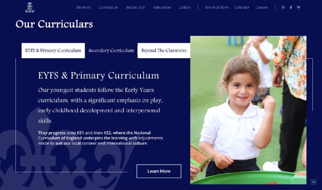 إنه الموقع الرسمي للمدرسة الملكية البريطانية الدولية في مصر، والتي توفّر تعليماً على الطراز البريطاني. يعرض الموقع جميع المعلومات الخاصة بالمدرسة، من البرامج التعليمية، ومعلومات وإجراءات القبول، إلى الحياة الطلابية، والهيئة التدريسية والإدارية، والتقويم السنوي، بما يلبي احتياجات أي ولي أمر يبحث عن مدرسة مناسبة لطفله.
