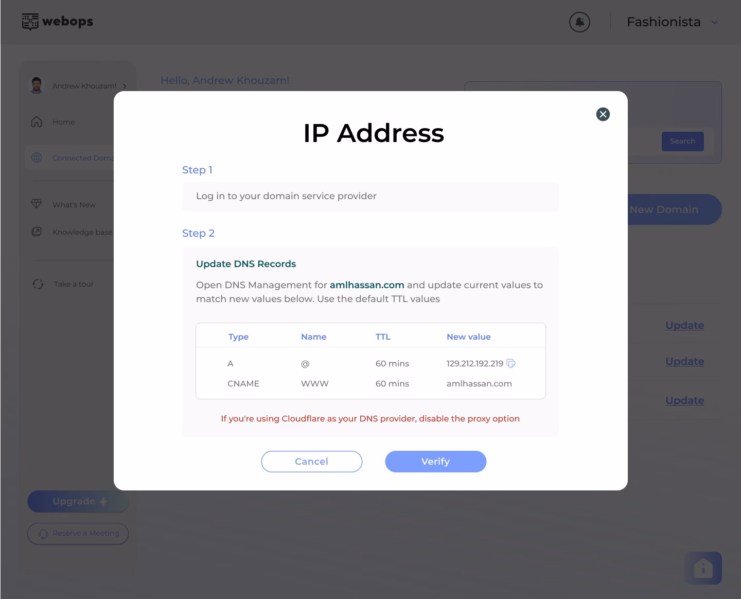 If you already own a domain from another provider (such as GoDaddy, Namecheap, or Google Domains), you can easily connect it to your WebOps website by updating your DNS settings.