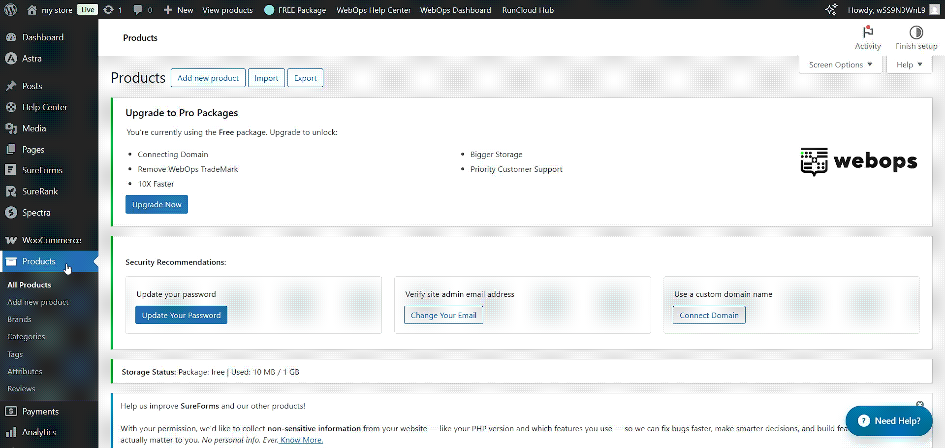 • Run WooCommerce Setup Wizard (onboarding screen)