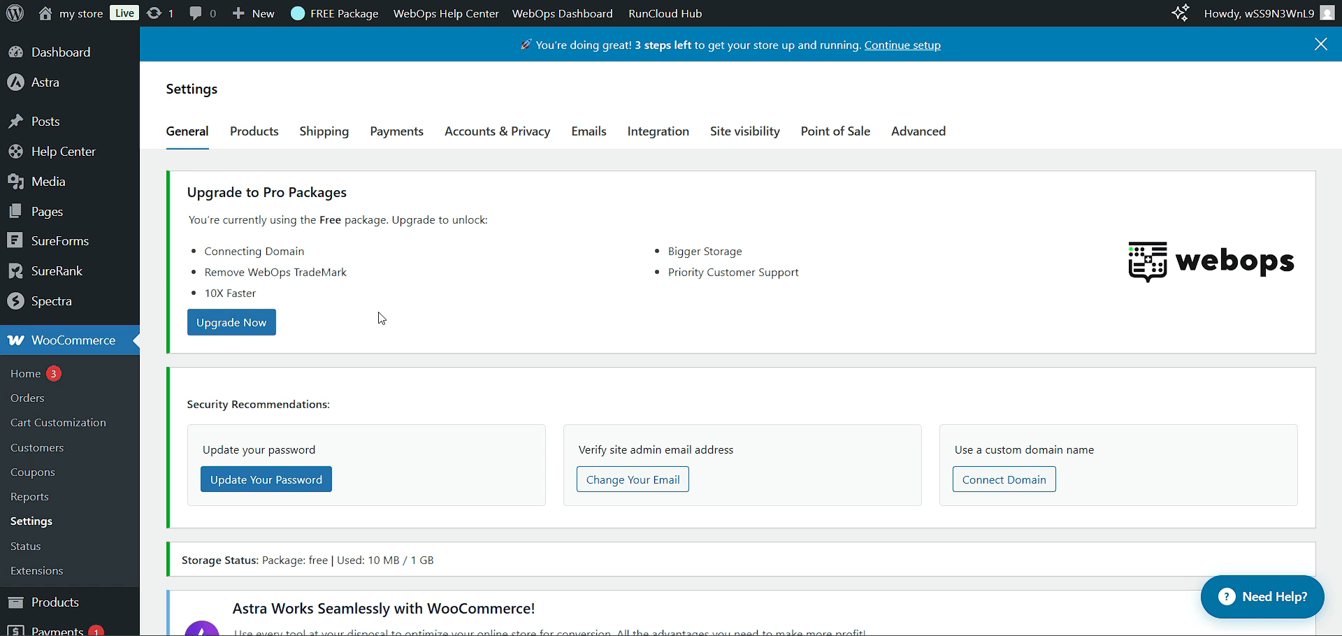 1) Start: Run the WooCommerce Setup Wizard (Onboarding screen) #